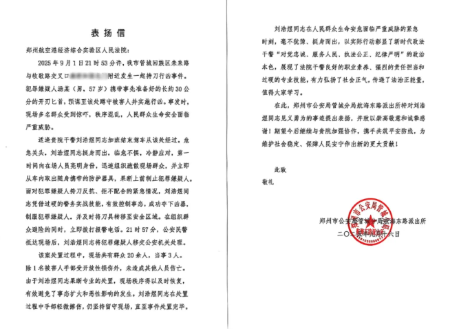 近日,郑州航空港区法院收到一封郑州市公安局管城分局航海路派出所寄来的表扬信,对该院执行局干警刘浩煜见义勇为、果断出手制服持刀行凶歹徒的事迹予以表扬,直到这时,大家才知道刘浩煜不久前不声不响干了件“大事”。