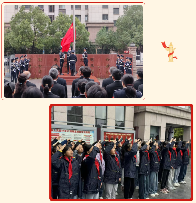 上午8:10,升国旗仪式正式开始。国旗护卫队步伐铿锵,护送五星红旗庄严入场。在雄壮激昂的《义勇军进行曲》中,鲜艳的国旗冉冉升起,迎风飘扬。观礼的少先队员整齐列队,肃立行队礼,其他人员庄重行注目礼,炽热的爱国情怀在每个人心中激荡。