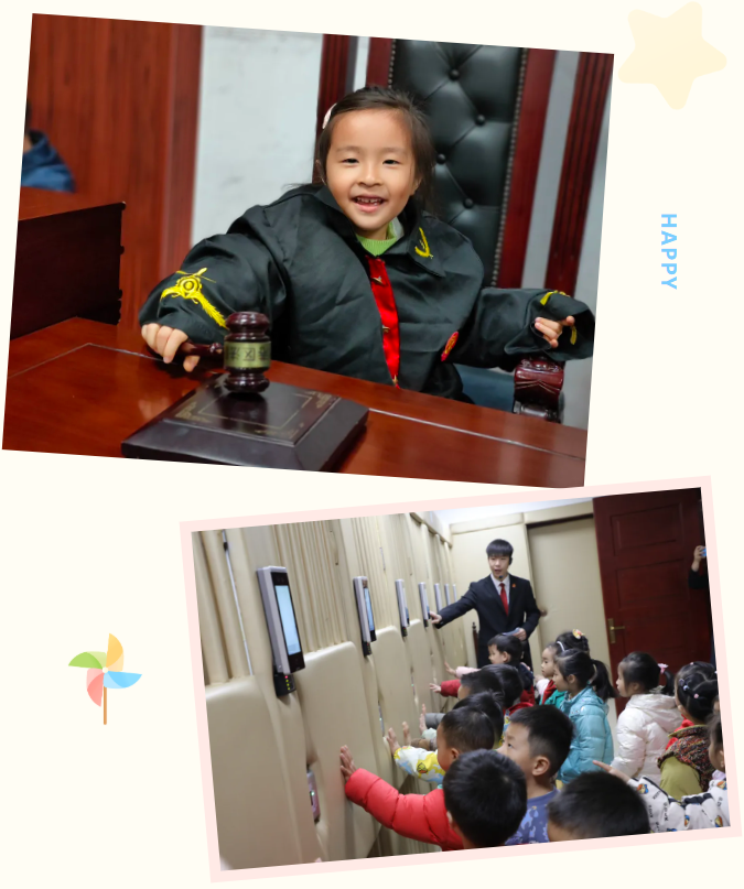 孩子们首先来到刑事审判法庭。一踏入法庭,庄严的国徽、高高的审判台等陈设,便吸引了小朋友的注意力。在法院宣传人员生动有趣的介绍下,孩子们了解了国徽的意义、审判长的职责等,随后通过“找座位”的小游戏,认识了法官、书记员、公诉人、被告人等不同角色,此刻,抽象的法律知识变成了孩子们听得懂、记得住的趣味故事。